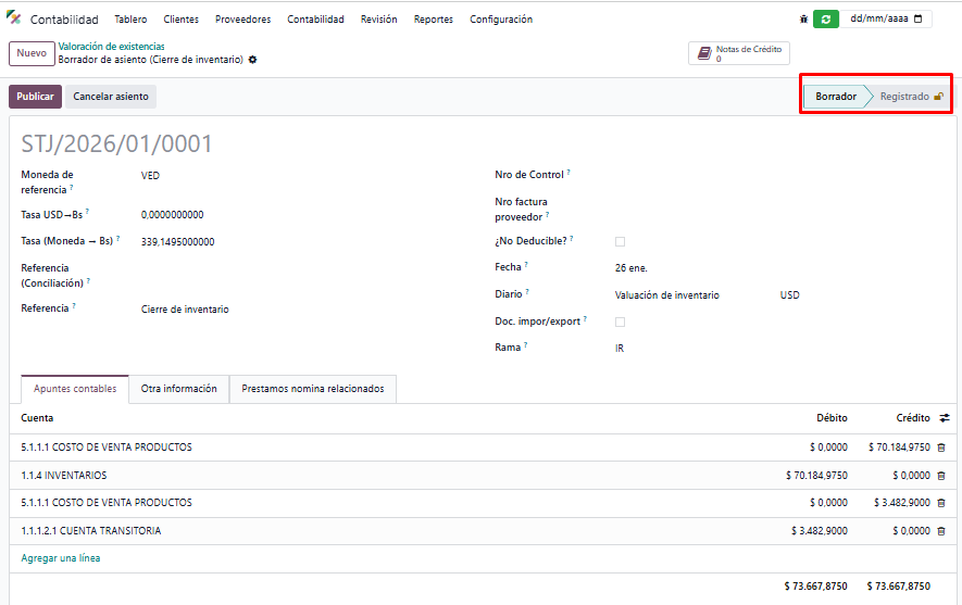 - El inventario sigue reflejando cantidades en tiempo real, pero el valor se consolida contablemente en el momento correcto.